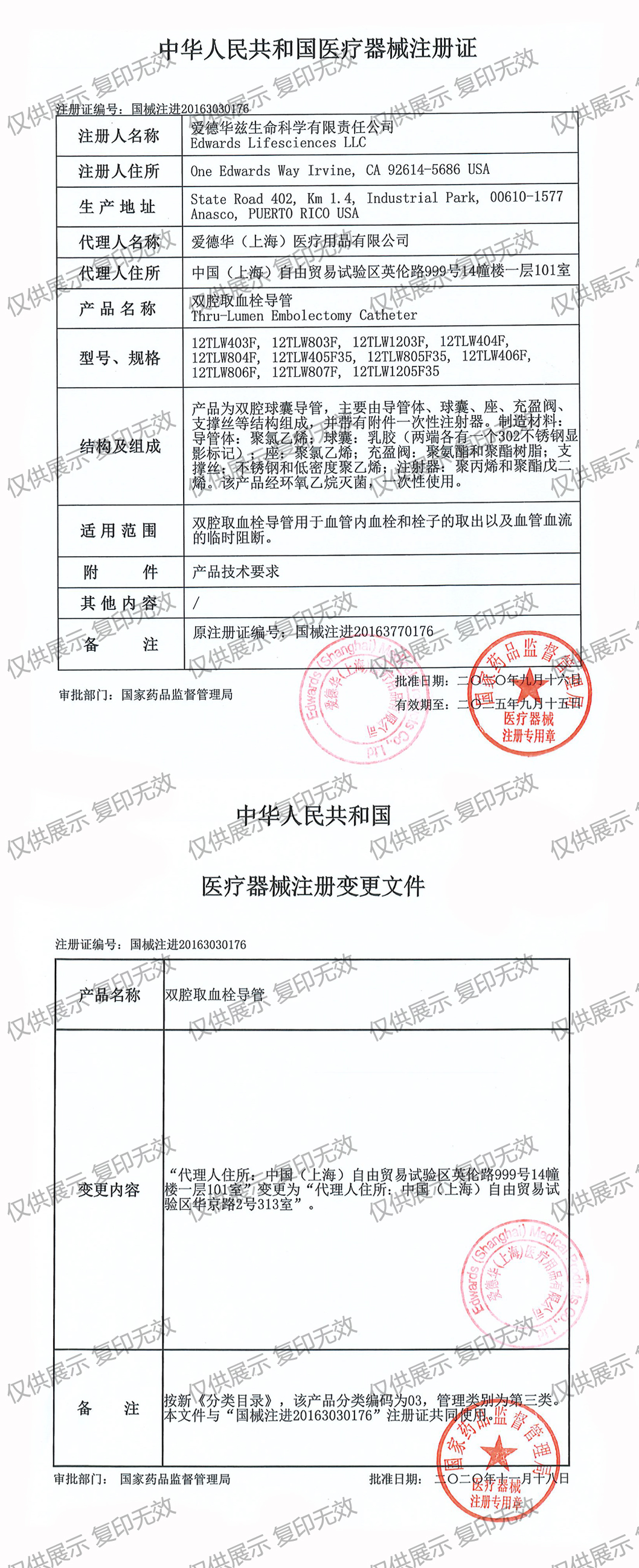 美國(guó)愛德華雙腔取血栓導(dǎo)管