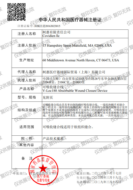 產品名稱:可吸收縫合線V-Loc180 Absorbable Wound Closure Device