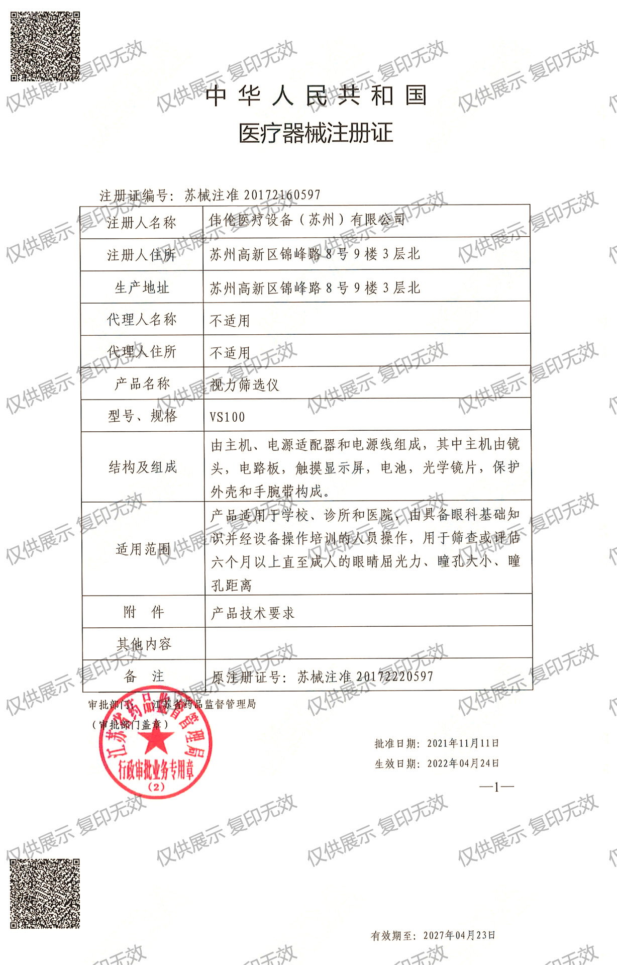 適用范圍:產品適用于學校、診所和醫院,由具備眼科基礎知識并經設備操作培訓的人員操作,用于篩查或評估六個月以上直至成人的眼睛屈光力、瞳孔大小、瞳孔距離。