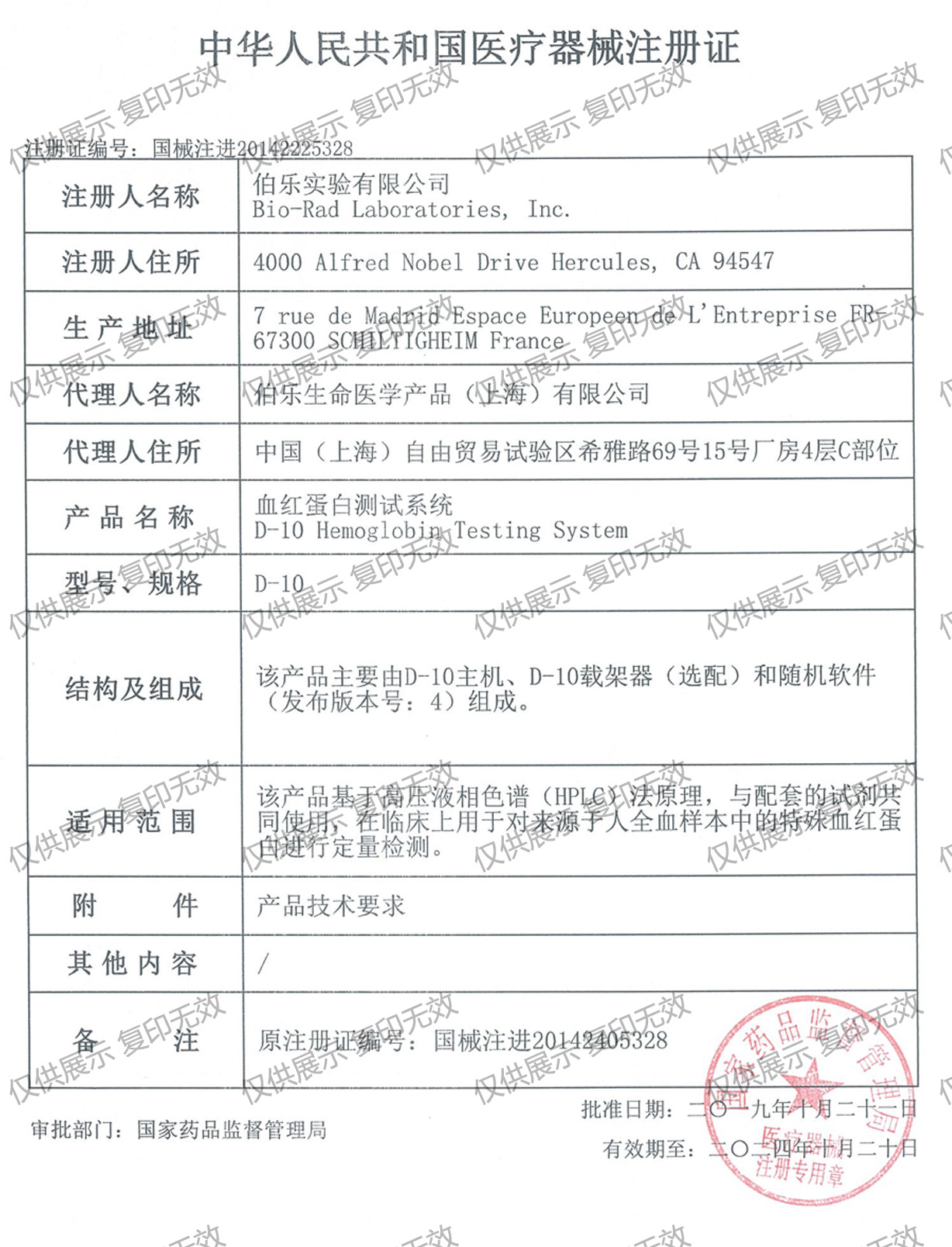 適用范圍:該產品基于高壓液相色譜(HPLC)法原理,與配套的試劑共同使用,在臨床上用于對來源于人全血樣本中的特殊血紅蛋白進行定量檢測。